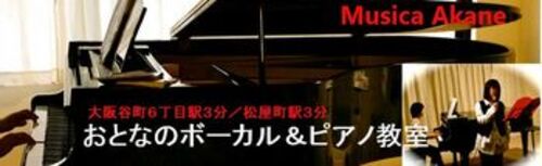 4年前から大阪西九条で開講しております、 「大人のボーカル&ピアノ教室」 この度、大阪谷町6丁目〜松屋町周辺 「からほり商店街」界隈に新たに開講しました。 内容はボーカル・ピアノ・音楽療法。 ・初心者さん:一度はボーカルやピアノを体験してみたい…